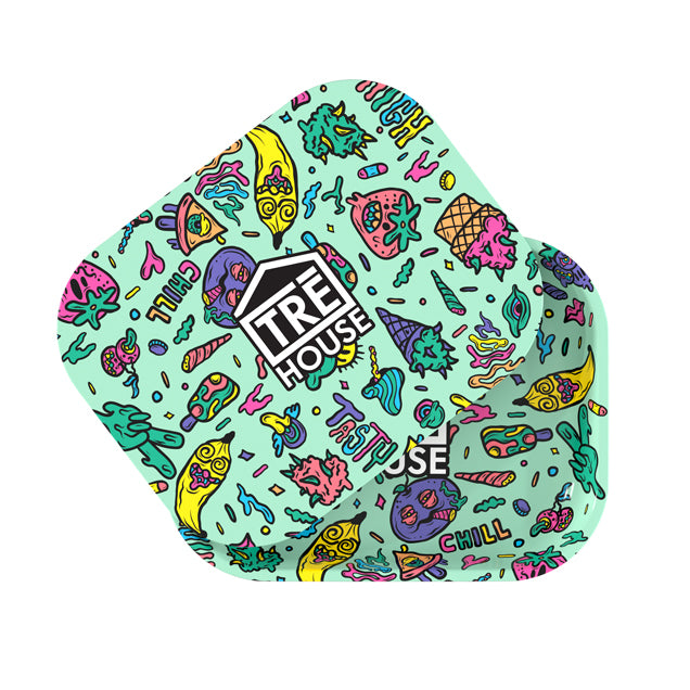 Haz que  enrolar sea una aventura fantástica con nuestra bandeja verde TRE House, ¡decorada con diseños alucinantes! Nuestras bandejas metálicas de alta calidad están hechas a medida para papel de liar, con una superficie superlisa, bordes altos y esquinas redondeadas, ¡para que no pierdas ni un solo pedacito de tu preciosa flor!